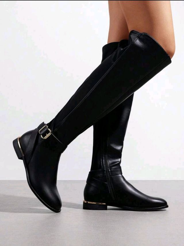 Botas altas negras con hebilla y detalle dorado
