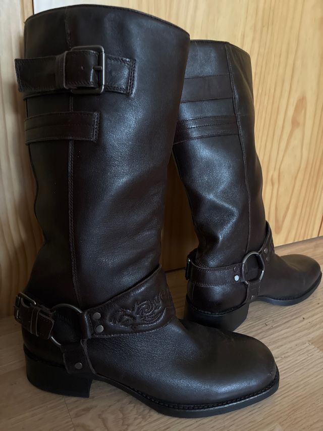 Botas Biker Zara Piel Marrón Talla 42 Nuevas