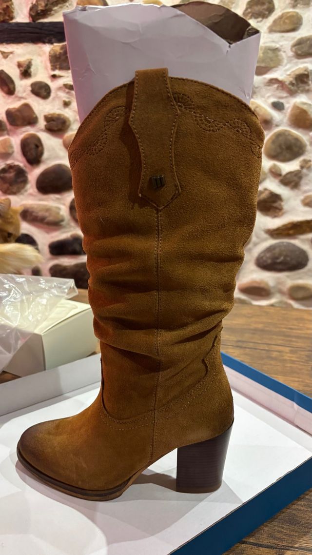 Botas camperas tacón cuero marrón a estrenar