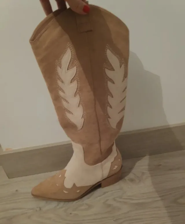 Botas cowboy beige y marrón