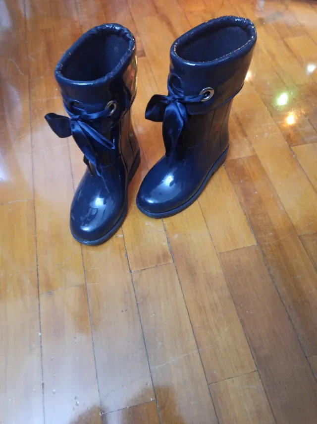 Detalles del productoBotas de agua para niña en talla 27. Son unas botas de charol con un lazo decorativo. Hechas en España. Marca Igor. Precio original 37'99€