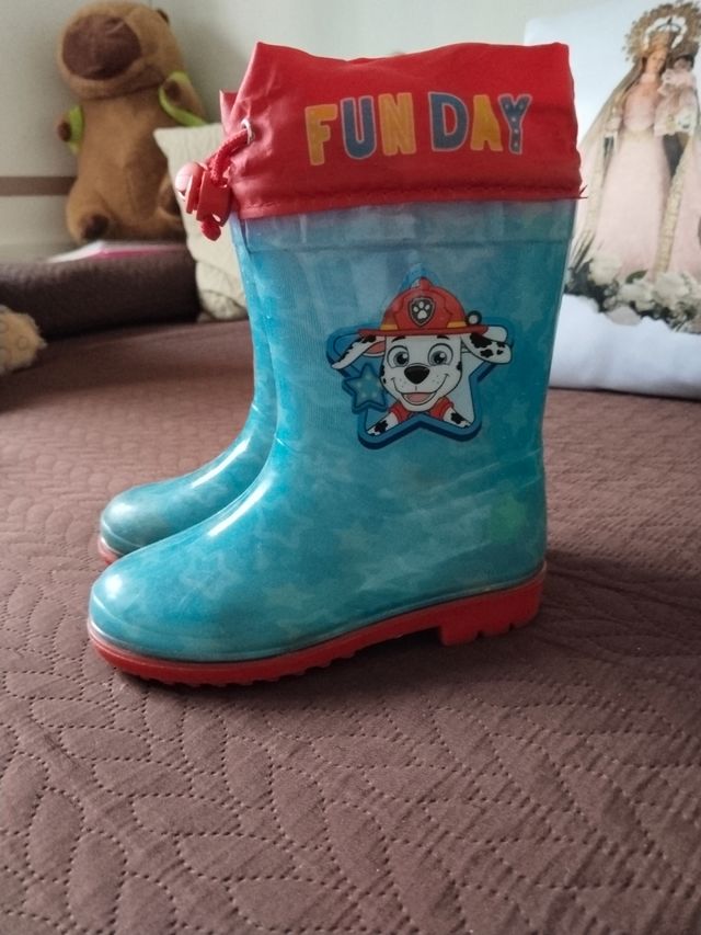 Botas de agua para niño con un divertido diseño. - Color azul con detalles rojos. - Estampado de personaje infantil. - Cierre con cordón ajustable.