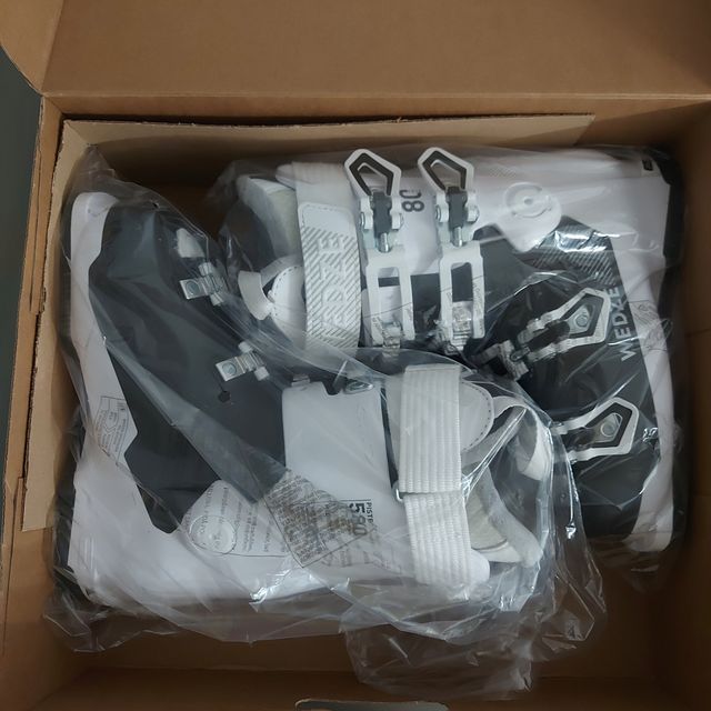 Tienen tres días de esquí de uso, son de esta temporada, de la marca wedze, modelo 580 W (las compré a finales de diciembre por 220 euros). Están prácticamente nuevas, pero una de ellas tiene un pequeño rasguño, como se ve en la foto.