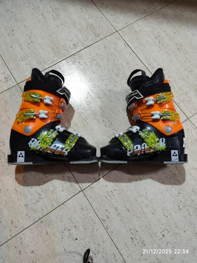 Detalles del productoBotas de esquí de la marca Fischer, con un diseño llamativo en naranja y negro.