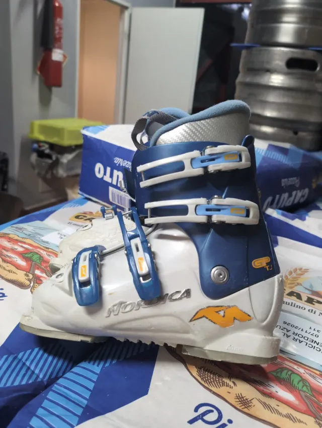 Botas de esquí para niñ@s de la marca NORDICA. 260mm - Color blanco y azul. - Cierres de hebilla.