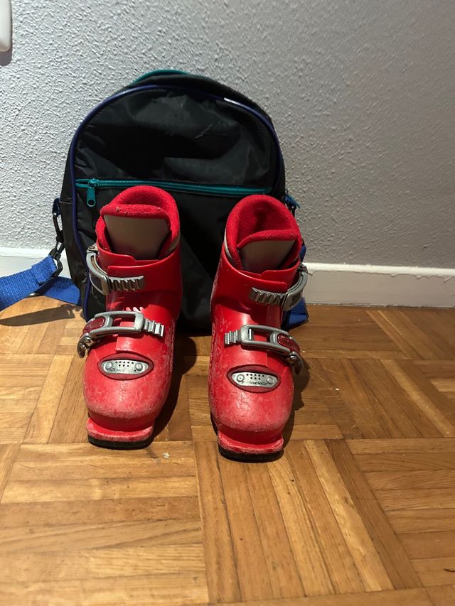Detalles del productoBotas de esquí de niño marca Nórdica de 220mm (talla 35 (UE) aproximadamente). Las marcas de uso que tienen no afectan en nada al funcionamiento ni al rendimiento de las botas. No tienen problemas para engancharse en los esquís.