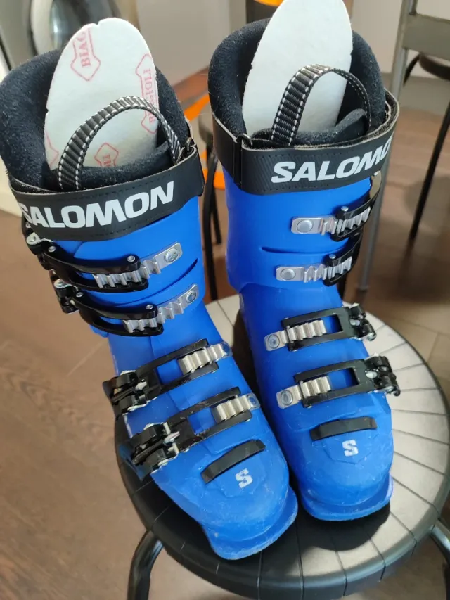 Detalles del productoBotas de esquí Salomon para niño en color azul.