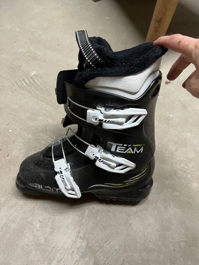 Detalles del productoBotas de esquí Salomon unas en color negro, y otras en blanco y verde talla 22. En buen estado, se venden porque se quedaron pequeñas.