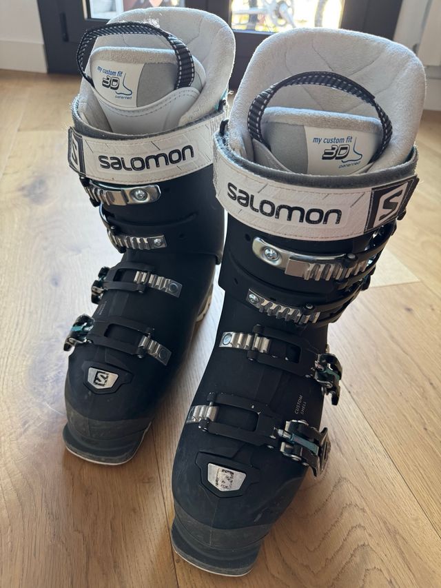 Botas de esquí Salomon en talla 26.5. - Cierre con hebillas. - Diseño en color negro. - Detalle de logo en la lengüeta.