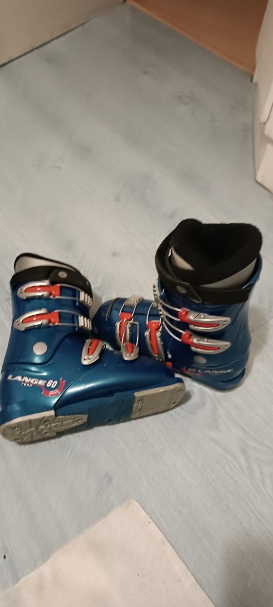 Botas de esquiar talla 37 color azul con 4 fijaciones rojas. En perfecto estado, con unas pocas rayas, pero perfectas.