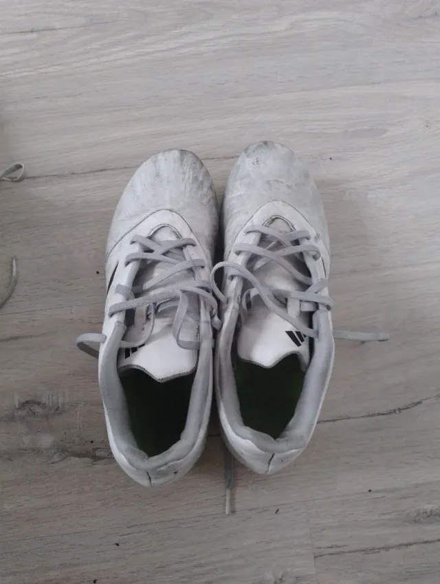 Botas de fútbol blancas, listas para la acción. - Diseño deportivo. - Cierre con cordones.
