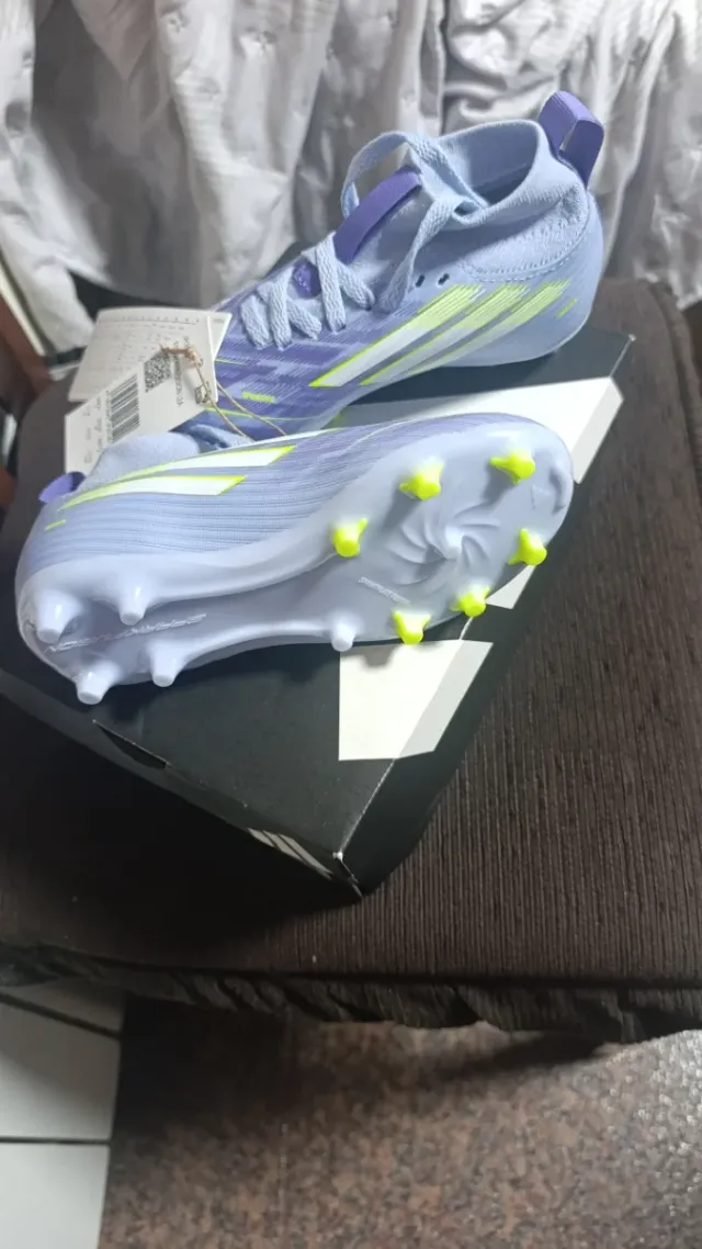 Detalles del productoBotas de fútbol Adidas en color lila y detalles en verde lima. Diseñadas para ofrecer un buen rendimiento en el campo.