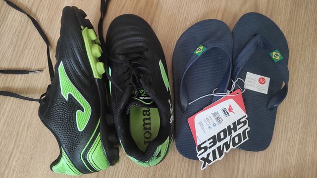 Vendo Botas de fútbol para niño de la marca Joma + chanclas, ambos talla 32 Las botas en muy buen estado y las chanclas - sin estrenar