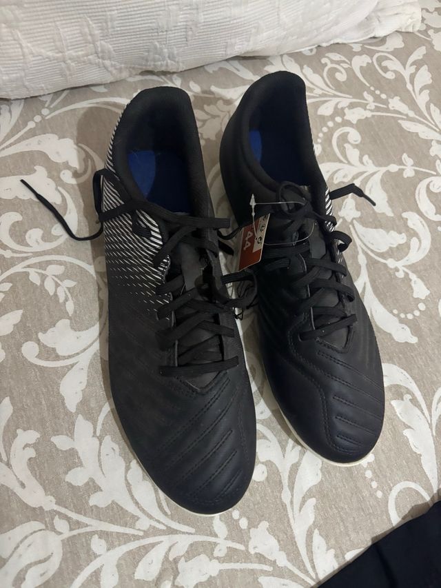 Botas de fútbol en color negro. Diseño moderno y cómodo. - Cierre con cordones. - Detalle de líneas blancas en el lateral.