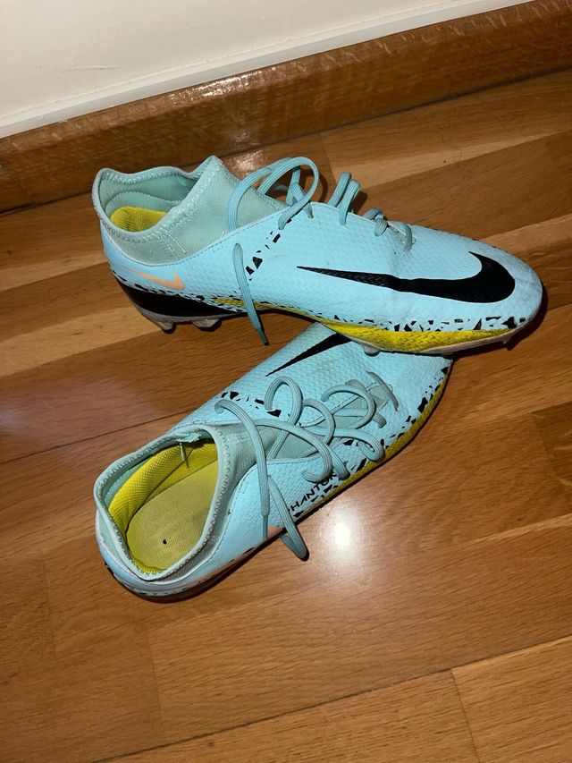 Detalles del productoBotas de fútbol Nike Phantom en color azul claro con detalles en amarillo y negro.