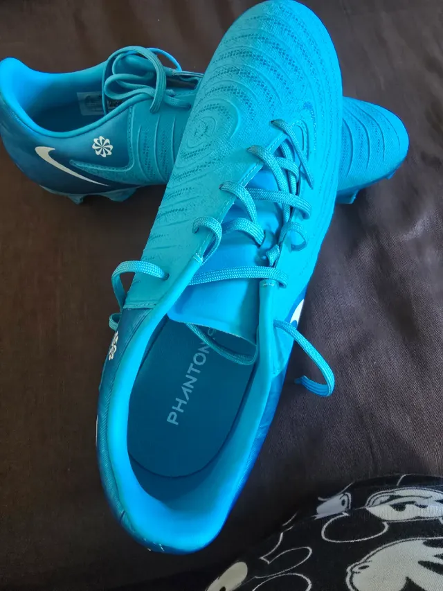 Botas de fútbol Nike Phantom en color azul. Talla 43 - Diseño moderno y llamativo. - Logo de Nike en el lateral. - Marca PHANTOM en la plantilla.