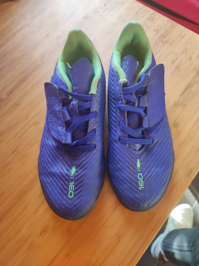 Botas de fútbol para niño en talla 31. Perfectas para jugar en césped artificial o natural.