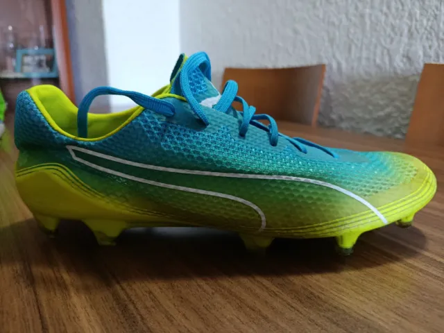 Detalles del productoBotas de fútbol Puma con tacos, diseñadas para el césped.