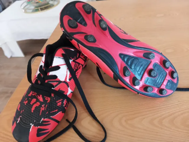 Botas de fútbol con un diseño llamativo en rojo y negro. - Suela con tacos para césped. - Cierre con cordones negros. - Detalle de estampado gráfico.