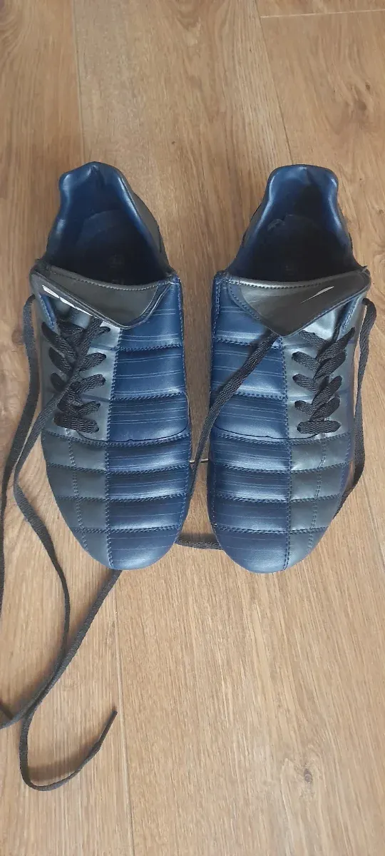 Botas de fútbol en color azul y negro, talla 44. - Diseño con paneles. - Cordones negros.