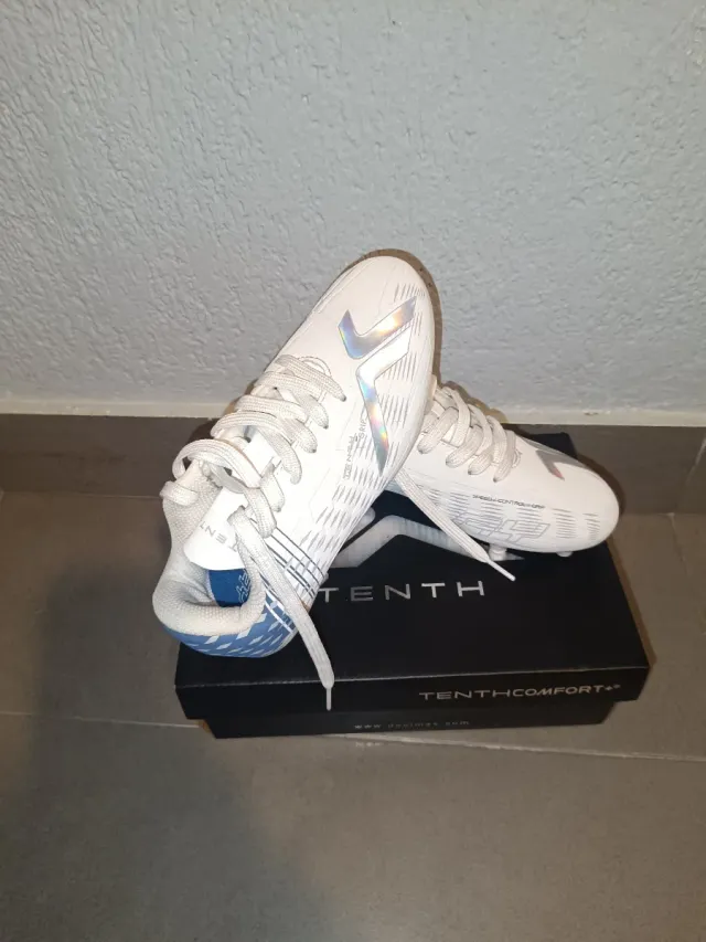 Detalles del productoBotas de fútbol de la marca Tenth en color blanco. Perfectas para jugar en césped artificial o natural.