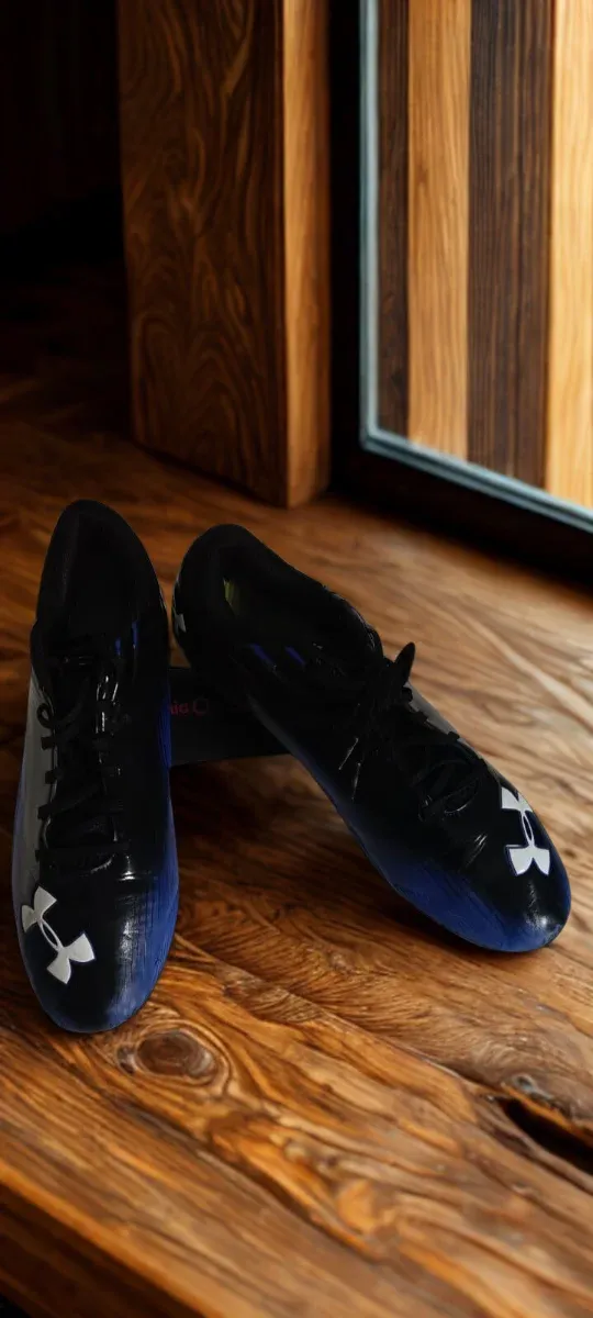 Botas de fútbol de tacos de la marca Under Armour. - Talla 43. - Color negro y azul.