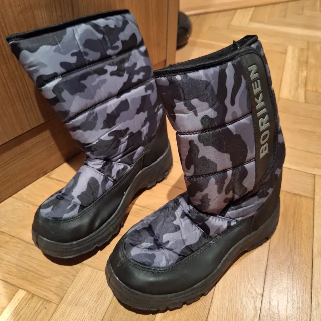 Botas de invierno para niño con estampado de camuflaje. - Talla 37. - Marca BORIKEN. - Diseño acolchado. - Suela de goma. - Cierre de cremallera.