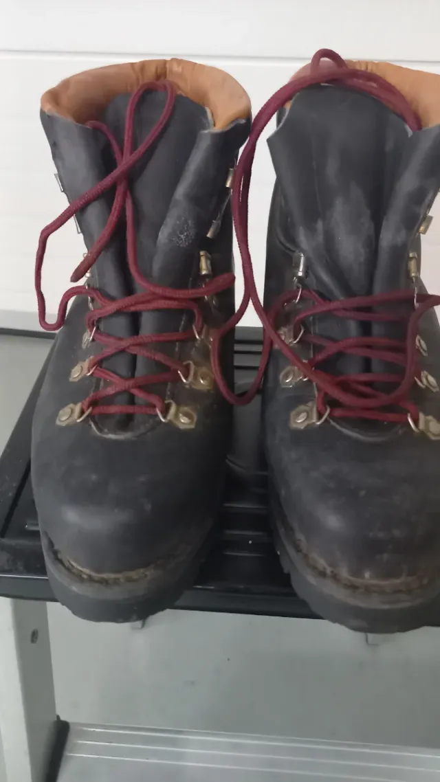 Botas de montaña de cuero negro con cordones rojos. - Material exterior de cuero. - Cordones de color rojo. - Suela de goma resistente. - Rigidas