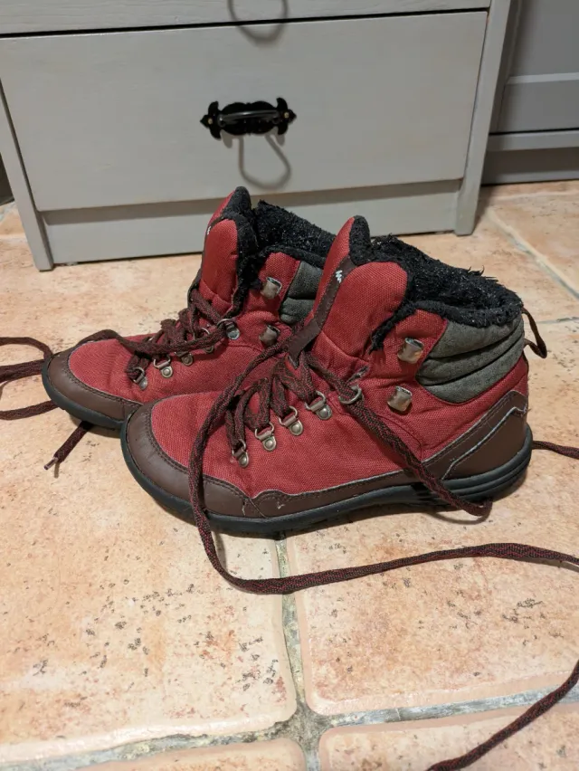 Botas de montaña rojas y marrones