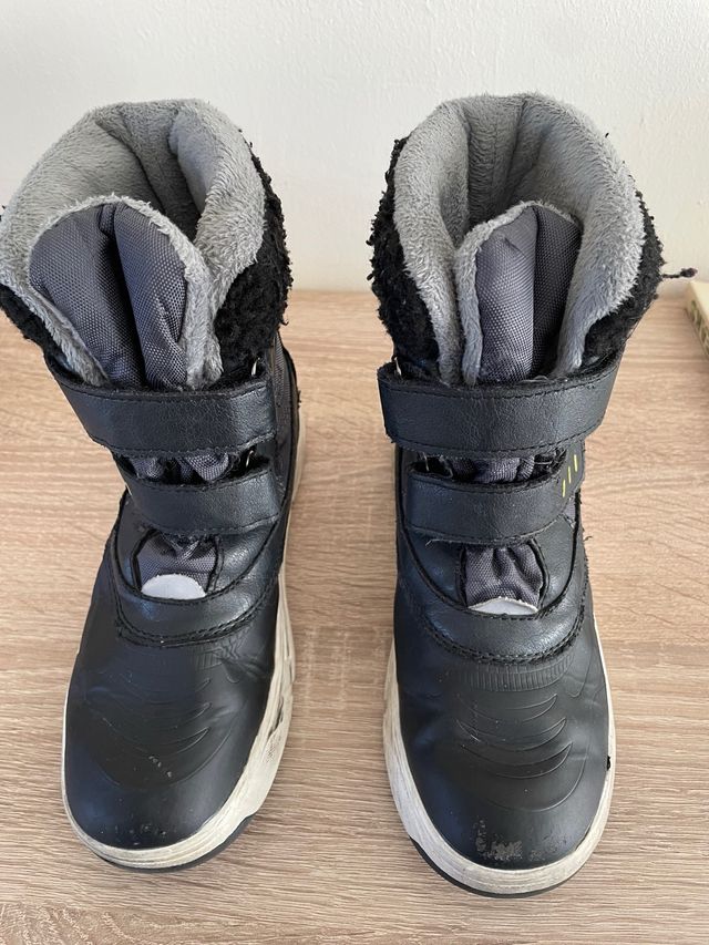 Botas de montaña en color negro, talla 34. Perfectas para mantener los pies calientes y secos. - Cierre con velcro. - Interior forrado de pelo. - Suela de goma.
