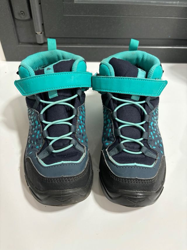 Detalles del productobotas de monte talla 31 en perfecto estado de dechatlon. corte las etiquetas porque le molestaban a la niña Medidas del producto