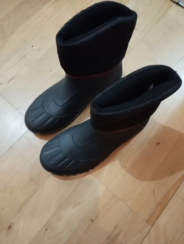 Botas de nieve negras, de Decathlon, prácticamente sin usar. Talla 43-43. - Exterior de goma. - Forro interior acolchado. - Detalle de ribete rojo.