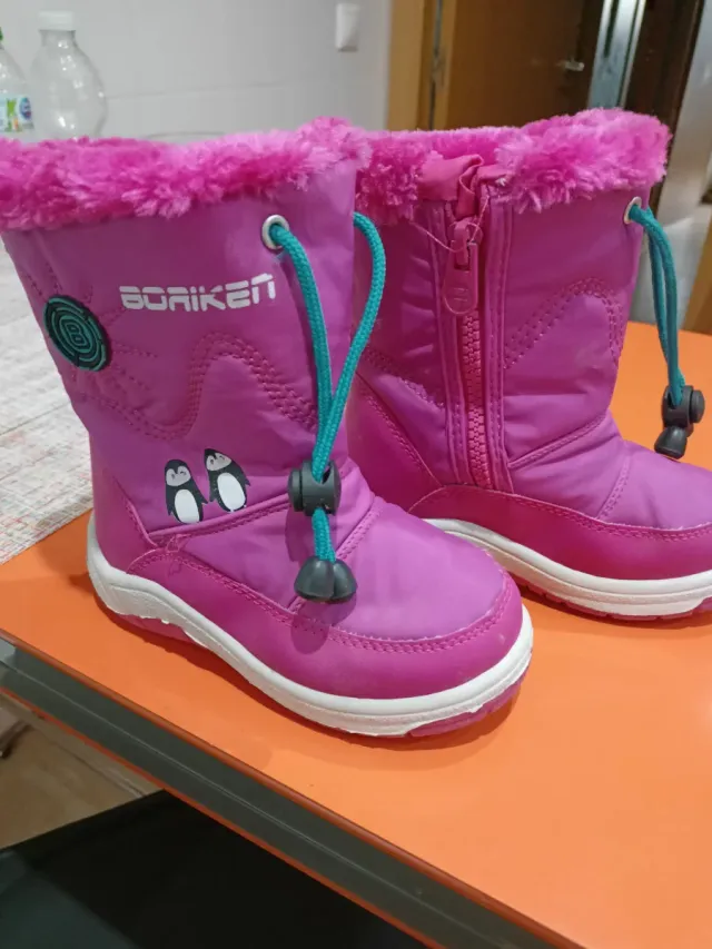 Detalles del productoBotas de nieve para niña de la marca Boriken, ideales para mantener los pies calientes y secos en el frío.