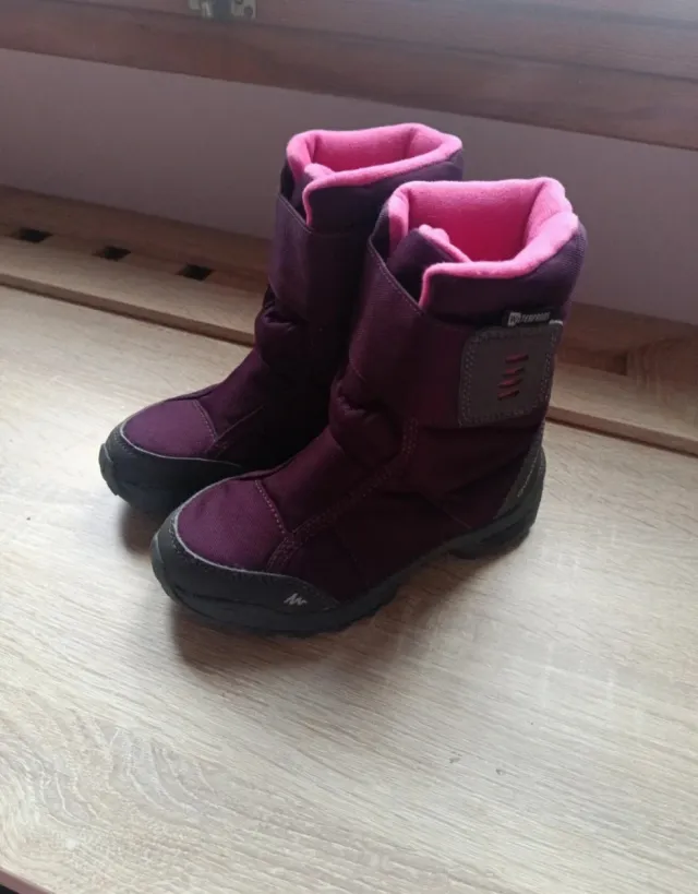 Detalles del productoBotas de nieve para niña en color morado con detalles en rosa.