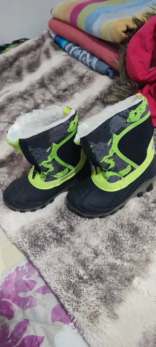 Botas de nieve para niño con diseño moderno y forro interior. - Cierre de cremallera. - Suela de goma. - Detalle de camuflaje en verde y gris.