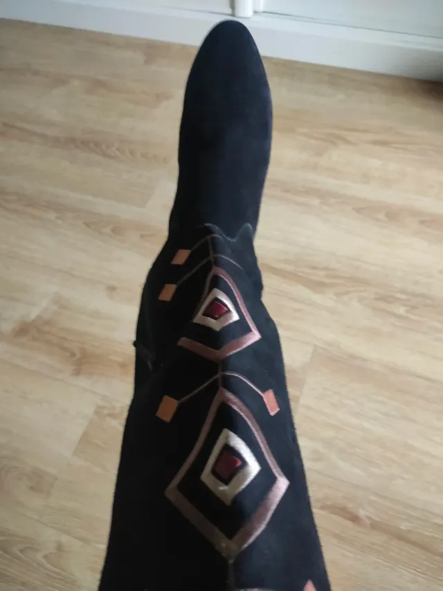 Botas de piel negras y rosas talla 39