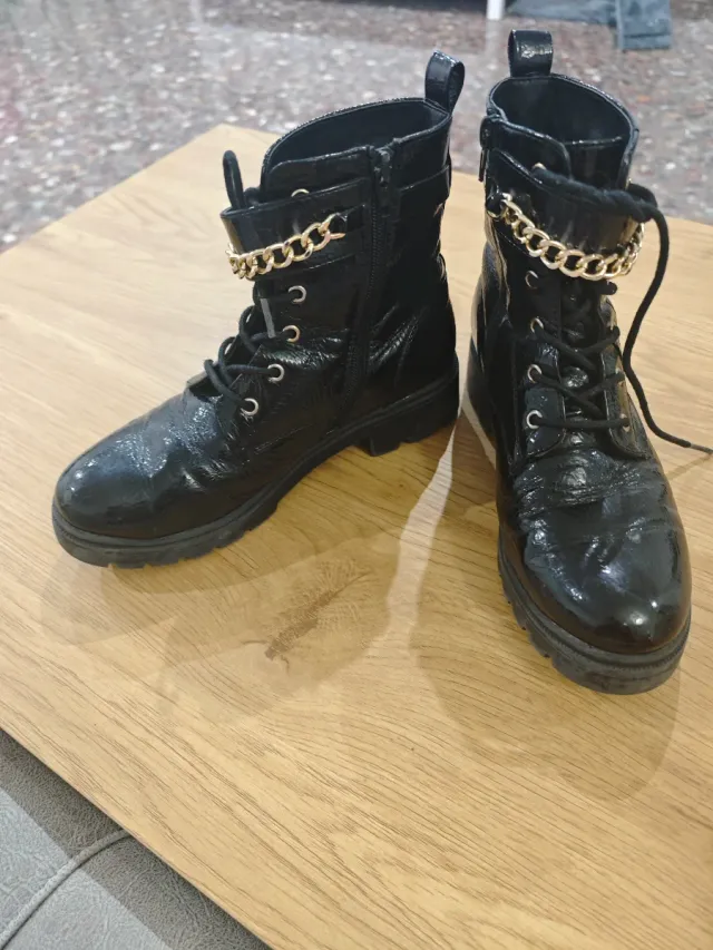 Botas de tobillo negras con cadena dorada