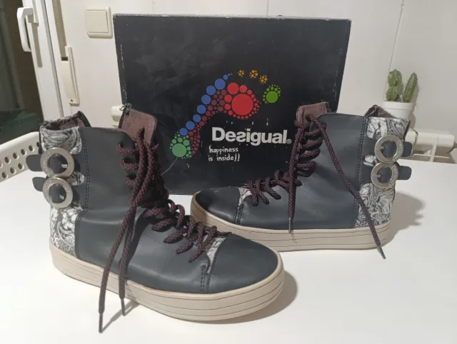 Botas deportivas de la marca Desigual. - Color negro con detalles en blanco y gris. - Cierre con cordones. - Dos hebillas decorativas en el lateral.