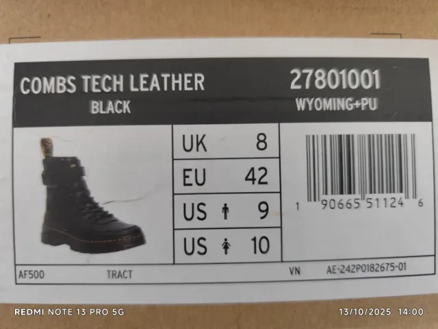 Botas Dr. Martens Combs Tech Leather Negras T 42