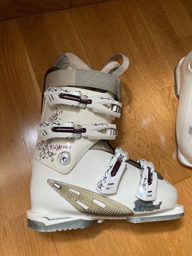 Detalles del productoBotas de esquí mujer Head Edge+ 8.5, Blancas, en buen estado, talla 23-23,5. ( talla 36,5 - 37 en zapato) Muy cómodas y calientes. Ideales por la comodidad para aprendizaje, iniciación o esquí tranquilo. Se venden por haberse quedado pequeñas. Medidas del producto