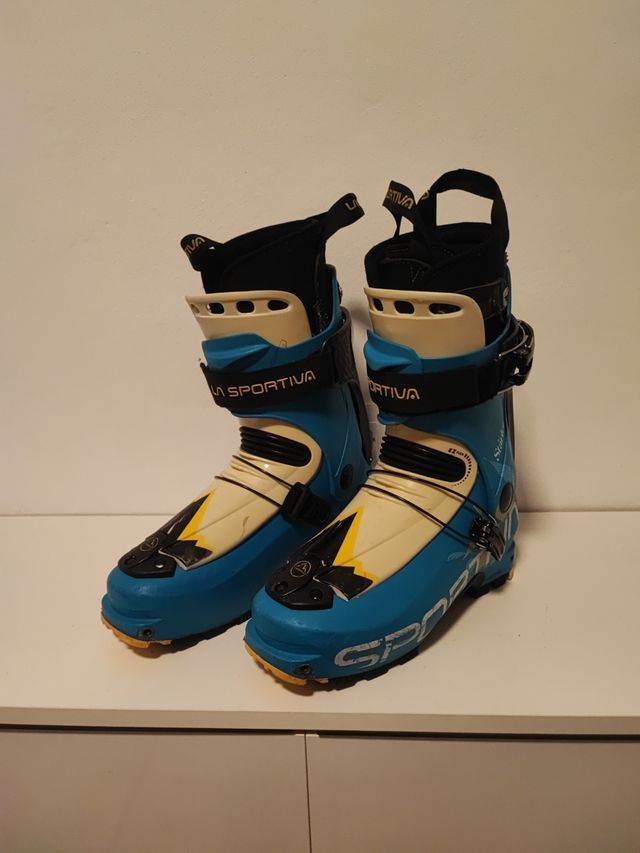 Detalles del productoVendo estas maravillosas botas de esquí de travesía o montaña. Skimo. Sportiva Starlet. Están marcadas como talla 26 pero ten en cuenta que tallan algo pequeñas pues la plantilla mide unos 25/25.5 cms. Es decir yo diría que equivale a talla 40. Medida de carcasa 287 mm. Alta gama, muy ligeras unos 1100 gramos por bota. Botines Palau de gran calidad. Buen estado, solo algunos arañazos superficiales. Precio nuevas 400 euros, Ofertón por solo 120 euritos!