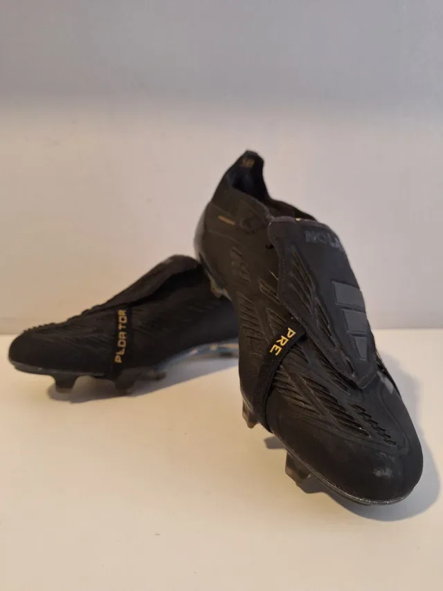 Detalles del productoBotas de fútbol Adidas Predator en color negro con detalles dorados con lengüeta.
