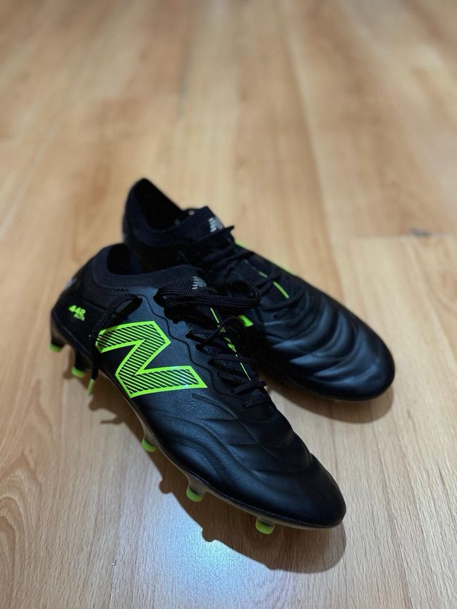 Vendo estas New Balance 442 Elite FG en negro y verde neón, un modelo top pensado para jugadores que buscan comodidad, control y un toque más clásico pero con materiales modernos.
