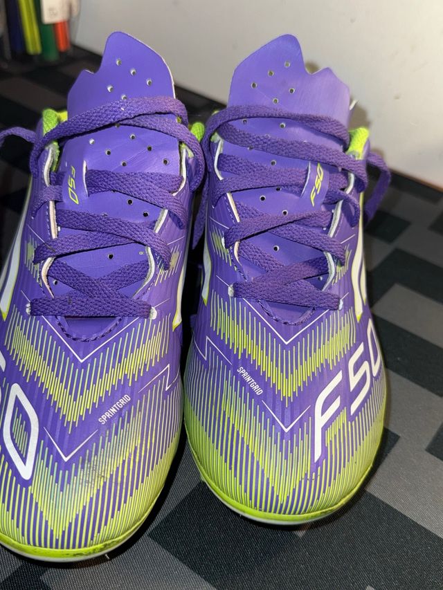 Detalles del productoBotas de fútbol para niño Adidas F50 en talla 34. Diseñadas para ofrecer agilidad y velocidad en el campo.