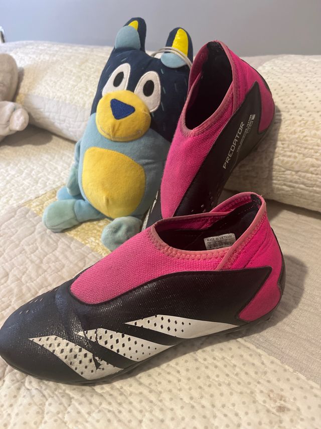 Detalles del productoVendo botas de fútbol Adidas Predator para niño, en color negro y rosa.