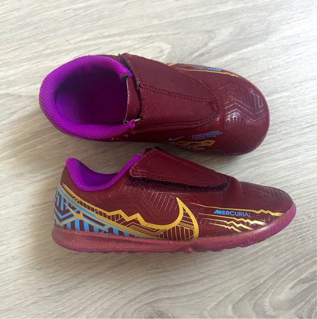 Detalles del productoVendo zapatillas de fútbol infantiles multitaco con velcro de Kylian Mbappé Nike Mercurial. Están en muy buen estado, apenas usadas. En la última foto se ve una pequeña grieta en la zona del velcro aunque prácticamente pasa desapercibida.
