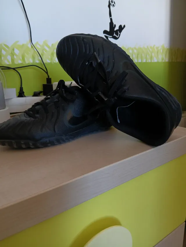 Botas de fútbol para niño de la marca Nike, modelo Tiempo. - Talla 36.5. - Diseño multitacos para césped artificial o tierra.
