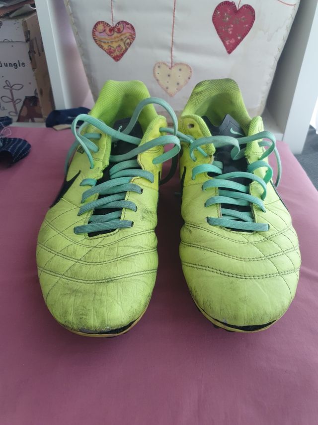Detalles del productoBotas de fútbol para chico marca Nike, en color verde lima. Están usadas, pero en buen estado. - Ideales para entrenar o jugar partidos. - Son de piel y presentan un ligero desgaste por el uso. - Se venden dos botas.