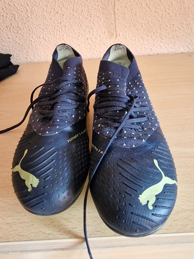 Detalles del productoBotas fútbol Puma en perfecto estado. Se puede apreciar en fotografías. Mejor ver. Utilizadas muy poco pues le ha crecido muy rápido el pie. Talla 32. Me costaron las botas 80 euros.