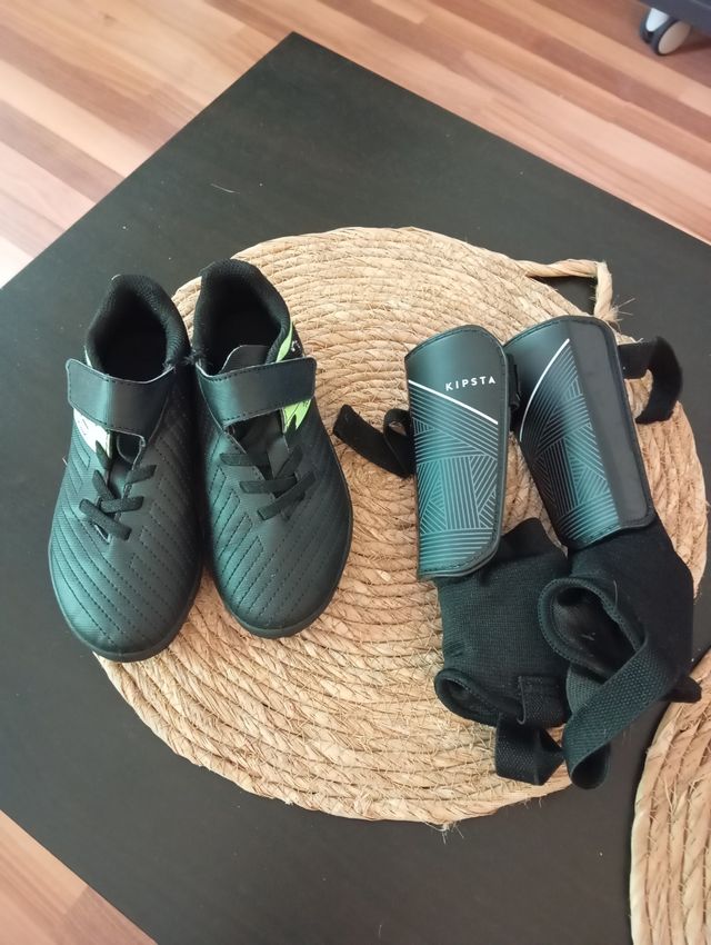 Botas de fútbol de niño talla 30 y espinilleras talla XS. Están en muy buen estado. Poco uso.
